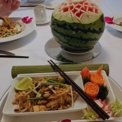 Pad Thai. The legendary and the best. The world-famous noodle dish from Thailand. Pad Thai is not just noodles, beansprouts and peanuts as you've experienced, there are many more ingredients than those. Executive Thai chef, Rujira Herd, will reveal the trade secrets she uses for her top-flight clients. Learn essential blending techniques and the key ingredients used to complement the flavour including dried prawns, bean curd, preserved mooli, palm sugar and Thai chives. Make superior Pad Thai professionally in this hands-on demonstration. All diets catered for: email contact@kruathai.co.uk with dietary requirements three days in advance.
